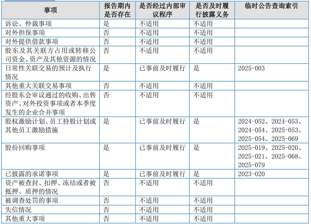 重大事项的合规情况